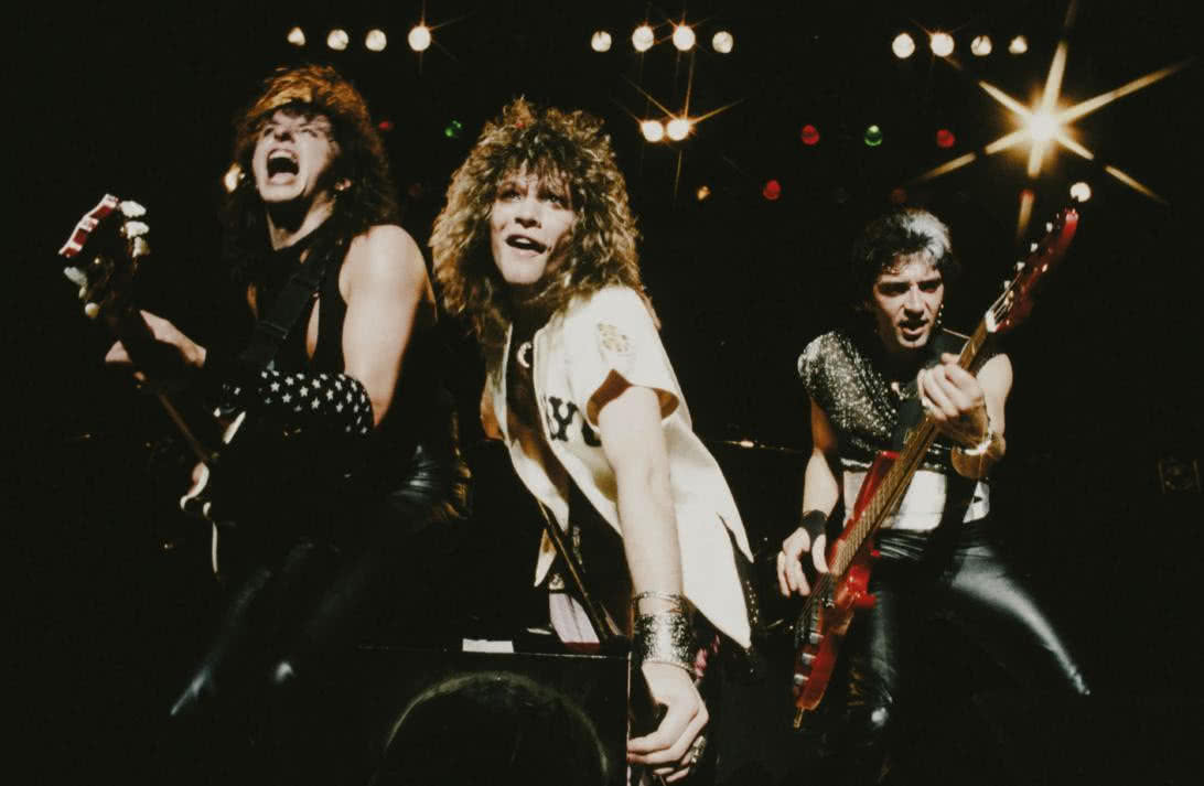 Sambora, Bon Jovi i Alec John Such występują w Nakano Sun Plaza, Tokio, 20 kwietnia 1985 roku.