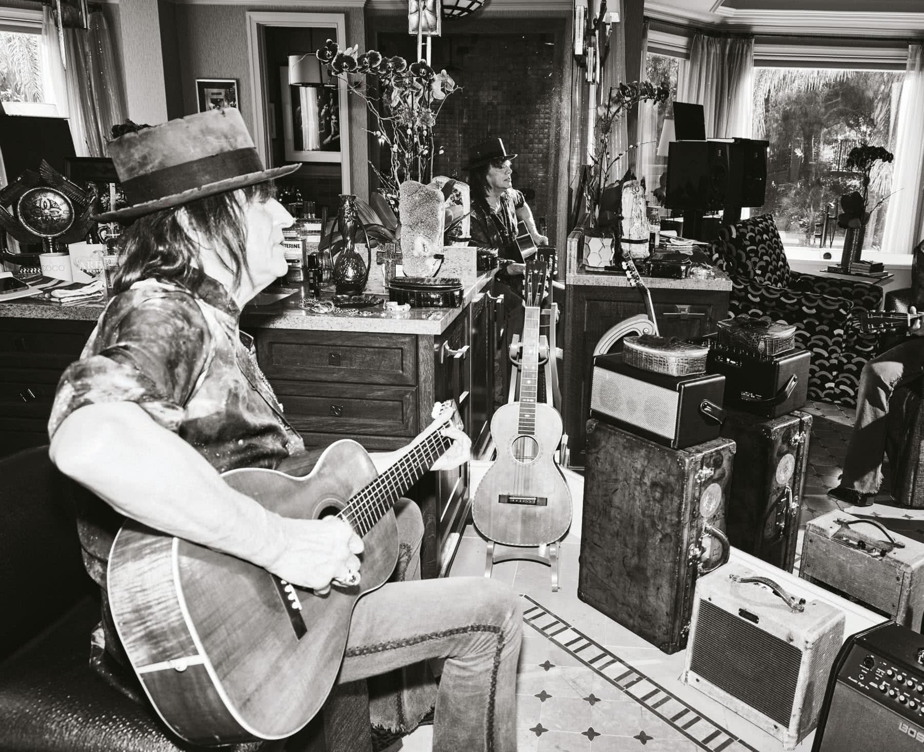 Siedząc w swojej kuchni po trzygodzinnej sesji zdjęciowej, Sambora wskazuje na zestaw sprzętu nagraniowego ustawionego w sąsiednim salonie.