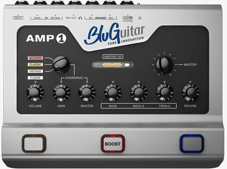 Zaprojektowany przez Thomasa Bluga, doświadczonego gitarzystę, wzmacniacz BluGuitar AMP1 o mocy 100 W nawiązuje do mocy i charakteru rozwiązań lampowych, ale pozwala osiągnąć znacznie bogatsze brzmienie, a wszystko przy wadze zaledwie 1,2 kg.