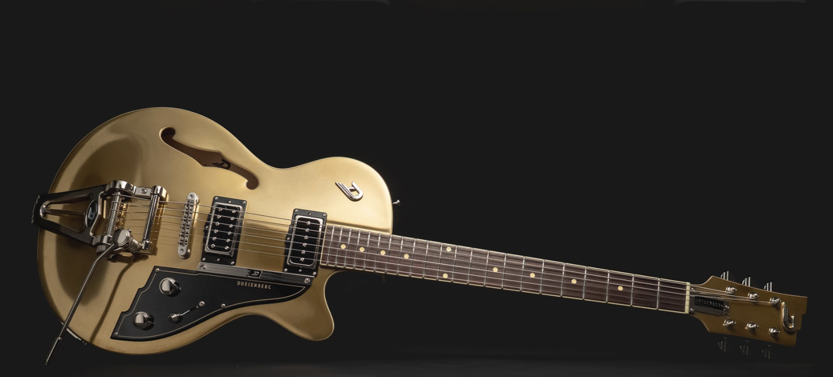 Instrumenty z tej serii korzystają z rozwiązań wprowadzanych szerzej w ofercie producenta na 2026 rok. Na pokładzie znajdziemy m.in.: nowy system tremolo Sapphire Deluxe Tremola, metalowe logo na główce, fabryczny futerał i certyfikat autentyczności. Do tego dochodzi standard Duesenberga, czyli precyzyjne wykończenie progów (Plek) i charakterystyczny hardware.
