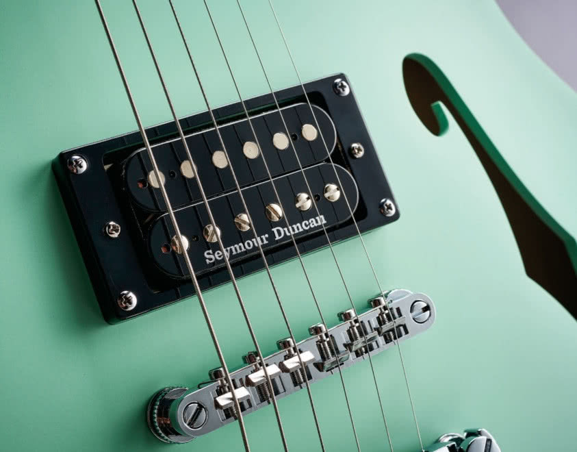 Biorąc pod uwagę poprzednią formę DeLonge’a, nie powinno dziwić, że ta gitara jest wyposażona w pojedynczy przetwornik humbucker w pozycji mostka – Seymour Duncan SH-5, znany ze swojej średniej mocy wyjściowej, wszechstronnej wydajności do wszystkiego, od bluesa po hard rock i metal. Dalej jest podłączona do samotnego regulatora głośności, który jest również wyposażony w obwód treble-bleed, aby zachować wysokie tony, gdy pokrętło głośności jest ściśnięte. Elektronicznie to wszystko; nie ma kontroli tonu, przełączania (ponieważ nie ma alternatywnej pozycji do wyboru), a humbucker pozostaje w pełnym stanie dwucewkowym.
